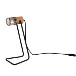 Lámpara de sobremesa TOSH estilo vintage en metal negro y madera, con foco orientable y casquillo E14. Ideal para ambientes retro e interiores IP20.