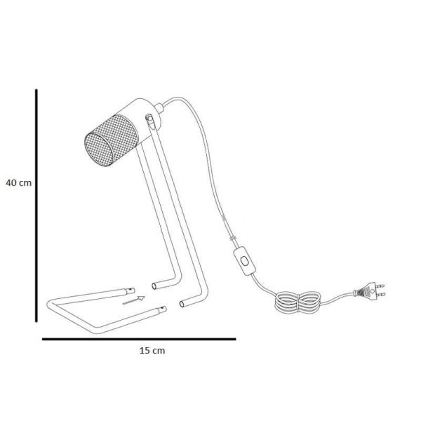 Su estructura compacta —40 cm de altura— la hace perfecta para instalar en mesitas auxiliares, escritorios, aparadores o rincones decorativos. Su protección IP20 garantiza un uso exclusivo en interiores como salones, pasillos o dormitorios. El interruptor integrado en el cable proporciona un uso cómodo y práctico, adaptándose al día a día en cualquier hogar con decoración clásica, industrial o rústica.