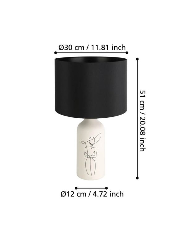 Lámpara de Sobremesa VINOZA Blanca con Base de Cerámica y Pantalla Textil Negra E27 IP20 – Eglo