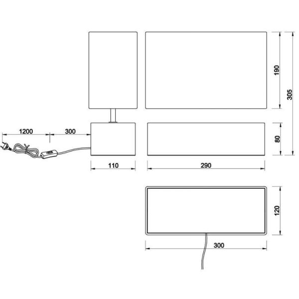 Lámpara de sobremesa Woody con estructura de madera natural y pantalla textil blanca. Funciona con bombilla E14 (no incluida). Diseño rectangular. Medidas: 29×11 cm y altura 30,5 cm. IP20.