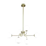 Esta luminaria de techo combina un acabado dorado elegante con seis bolas de cristal opal que suavizan la emisión de luz, creando un ambiente cálido y visualmente equilibrado. Su diseño moderno aporta presencia decorativa sin sobrecargar el espacio, convirtiéndose en un punto focal ideal para estancias interiores.