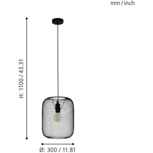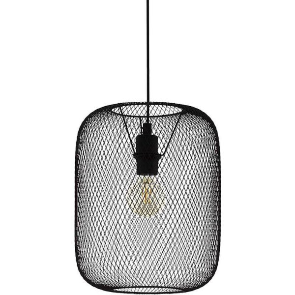 Esta lámpara de techo colgante destaca por su pantalla de rejilla de acero negro de 30 cm de diámetro, un diseño icónico de inspiración industrial que permite ver la bombilla y genera un efecto visual decorativo muy atractivo. Su estructura metálica aporta personalidad y encaja perfectamente en ambientes con estética industrial, vintage o loft, tanto en viviendas como en espacios comerciales.