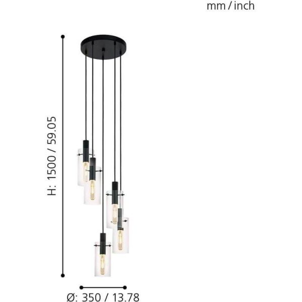 Lámpara de Techo MONTEFINO de Cristal Cilíndrico 5xE27 – Eglo