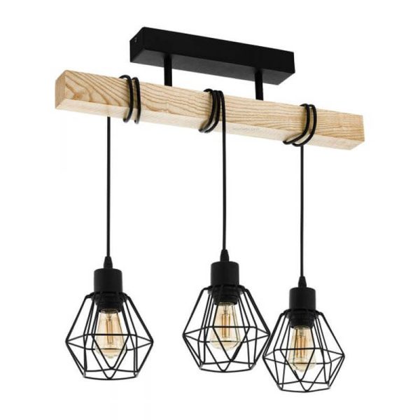 Lámpara de Techo TOWNSHEND 5 Vintage de Madera 3xE27 Regulable – Eglo