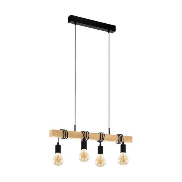 Lámpara en Suspensión de Techo TOWNSHEND Vintage 4xE27 de Madera y Acero – Eglo
