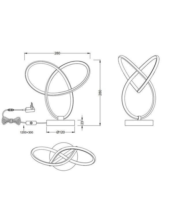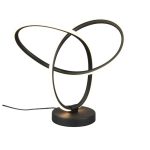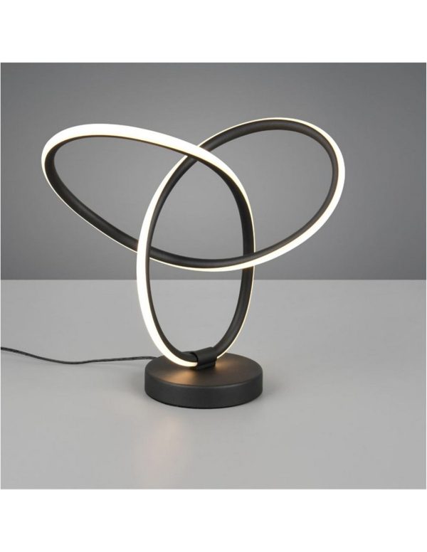 La lámpara de sobremesa LED LANDO en acabado negro mate destaca por su diseño moderno con aros entrelazados que aportan un estilo escultórico y decorativo. Su estructura metálica crea una pieza visualmente dinámica, ideal para complementar espacios de estética moderna, industrial o minimalista.