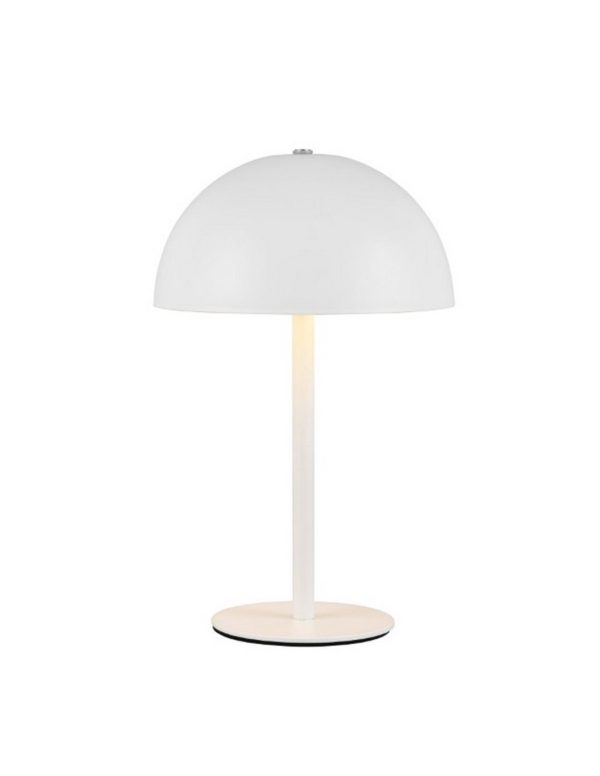 Lámpara de sobremesa LED MUNOZ tipo seta, recargable por USB y con función táctil. Ofrece 120lm de luz cálida 3000K con 1,3W de potencia. Ideal para interiores IP20.