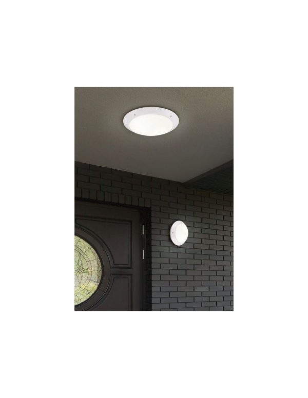 El plafón para exterior CAMARO en color blanco es una solución versátil y resistente para iluminar terrazas, balcones, patios o entradas. Su diseño limpio y funcional permite instalarlo tanto en el techo como en la pared, ofreciendo una luz uniforme y agradable. Gracias a su diámetro de 33 cm, se adapta perfectamente a espacios exteriores que requieren una luminaria discreta pero eficiente.