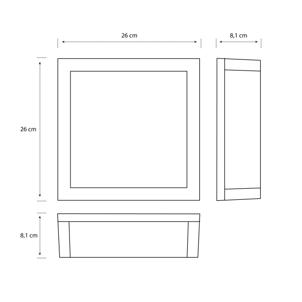 | Dimensiones | 1 cm, 26 × 26 × 8 |