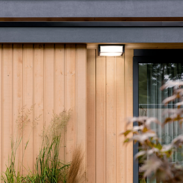 Fabricado en aluminio, está preparado para uso exterior gracias a su protección IP44. Sus dimensiones de 26×26×8,1 cm permiten una instalación sencilla en techos bajos o espacios reducidos.