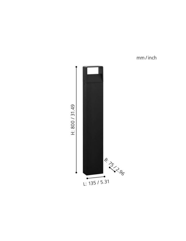 Gracias a su grado de protección IP65, el poste está totalmente protegido frente al polvo y los chorros de agua, siendo apto para su instalación en exteriores expuestos a la intemperie. Con una altura de 80 cm, resulta perfecto para iluminación de balizamiento. Su fácil instalación, bajo mantenimiento y la fiabilidad de Eglo Iluminación lo convierten en una solución duradera, eficiente y elegante para cualquier espacio exterior.