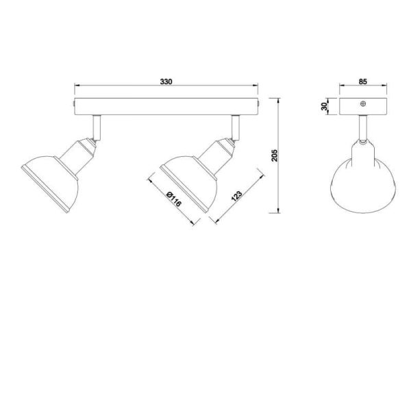 Cada foco es totalmente orientable, lo que permite dirigir la luz hacia puntos específicos, creando efectos de iluminación personalizados y adaptados a tus necesidades. La regleta funciona con dos bombillas E14 (no incluidas), lo que ofrece la libertad de elegir temperatura de color, potencia y estilo de bombilla según el ambiente que desees crear. Además, su montaje es apto tanto para techo como para pared, aumentando su versatilidad en proyectos de iluminación interior.