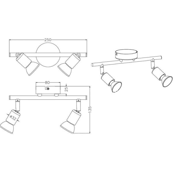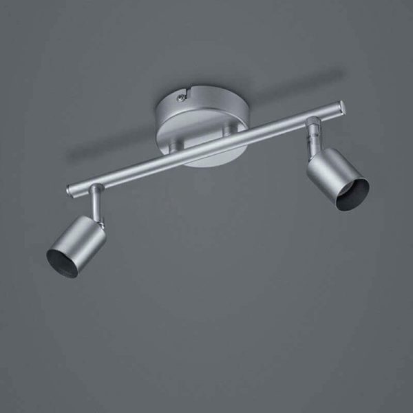 Los dos focos incluidos en la regleta son completamente orientables, permitiendo dirigir la luz hacia puntos específicos y creando ambientes personalizados según tus necesidades. Funciona con bombillas GU10 (no incluidas), lo que ofrece libertad para elegir la tonalidad y potencia de luz más adecuada para cada espacio. Su instalación es apta tanto en techo como en pared, adaptándose a distintos proyectos de iluminación interior.