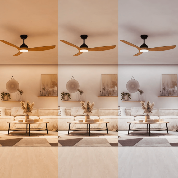 Este modelo incluye una luz LED de 24W y 2650 lúmenes, perfecta para iluminar la estancia con claridad. Permite seleccionar entre 3000K (cálida), 4300K (neutra) y 6500K (fría), adaptándose a diferentes ambientes y actividades. Todo se controla cómodamente mediante el mando a distancia incluido, haciendo su uso práctico y versátil.